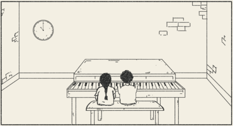 Let Somewhere tell you a tale of two, close yet afar. Trapped in The Sharp, help Noon find her way through, while a melody tries to bring them closer. Each note is a memory unsung. He must play. She must listen.